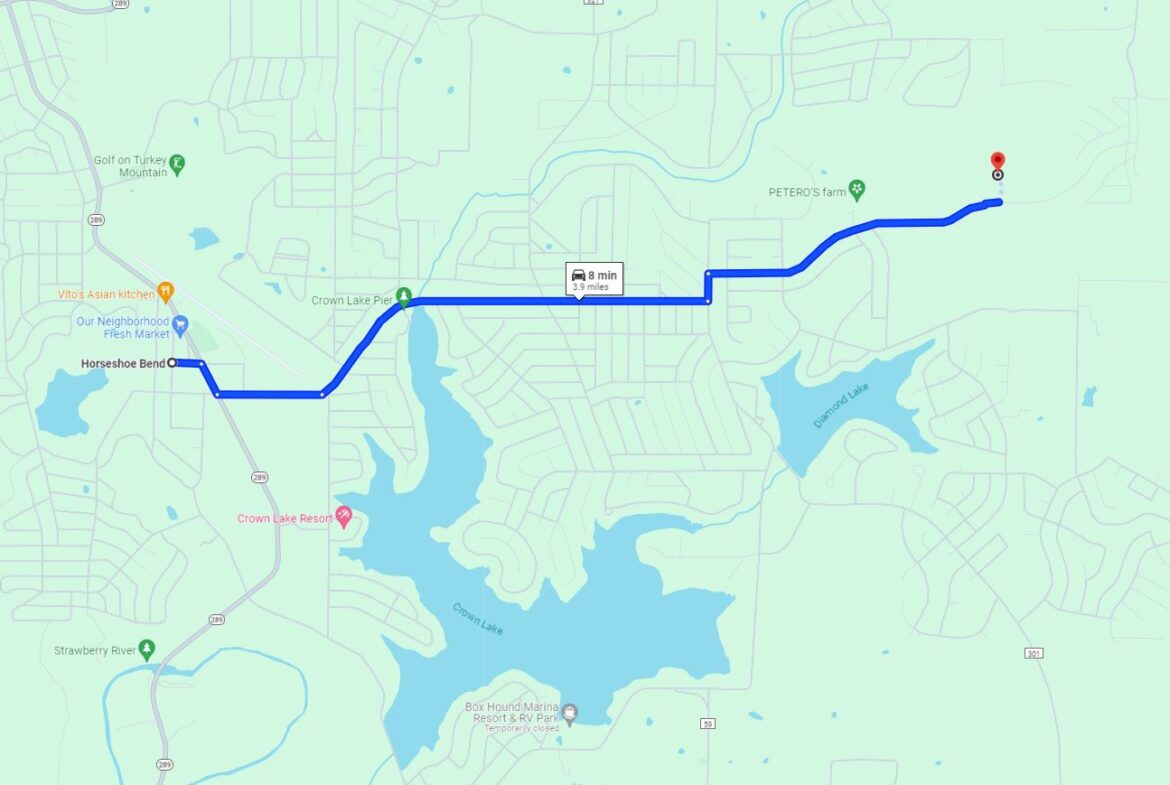 Closest Town: 15 miles to Oxford. 13 miles to Franklin. 3 minutes drive to Horseshoe bend. 2 hours & 30 minutes drive to Little Rock.